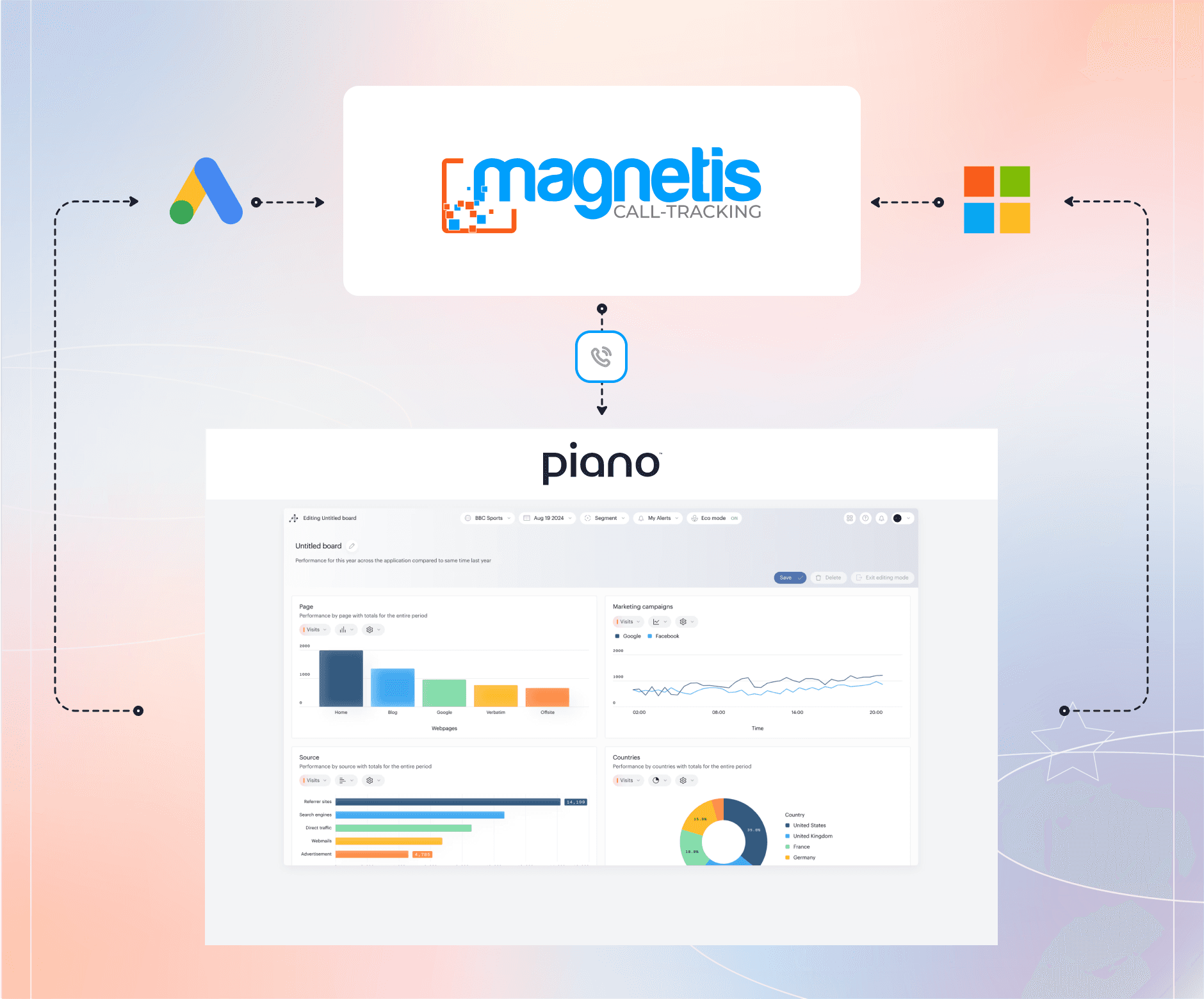 C'est ici qu'intervient le connecteur natif de Magnétis, la solution de call-tracking N°1 pour les réseaux. Il vous permet d'envoyer automatiquement les conversions issues de vos appels téléphoniques trackés directement vers votre compte Piano Analytics. Vos événements hors ligne s'intègrent de manière fluide à votre architecture de données existante.